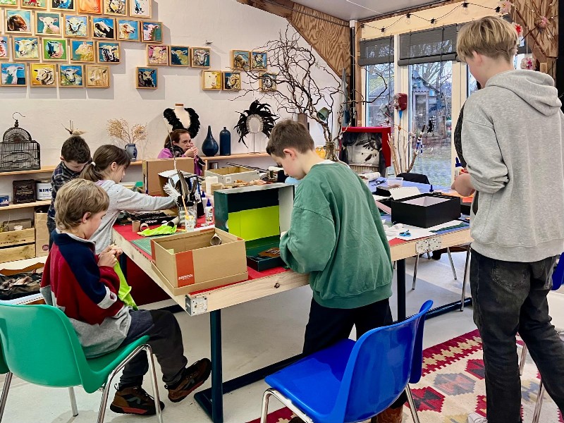 Box Buitensporig op het terrein van Werkplaats12 is sinds oktober 2025 in bedrijf. We hebben iedere donderdagmiddag KinderKunstLAB en iedere zondagmiddag van 13:00 – 17:00 uur Open Atelier.